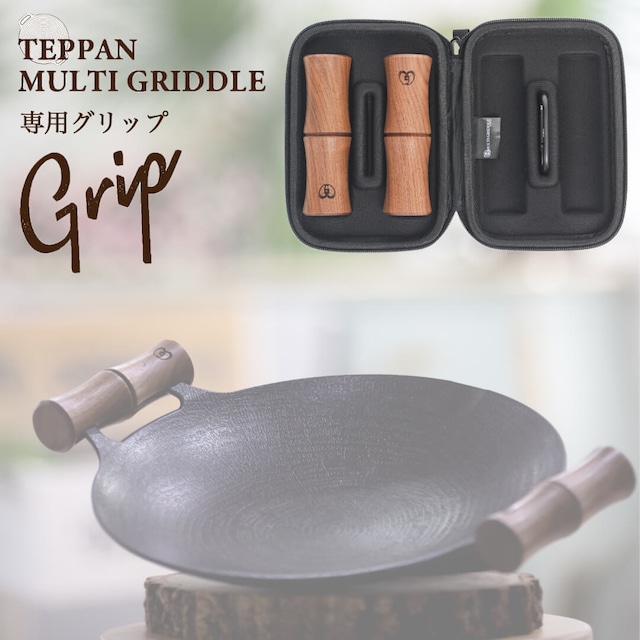 【 JHQ マルチグリドル 専用グリップ 】木製 ハンドル ミトン グリップ ハンドメイド 33cm 29cm 36cm 専用ケース カラビナ付き