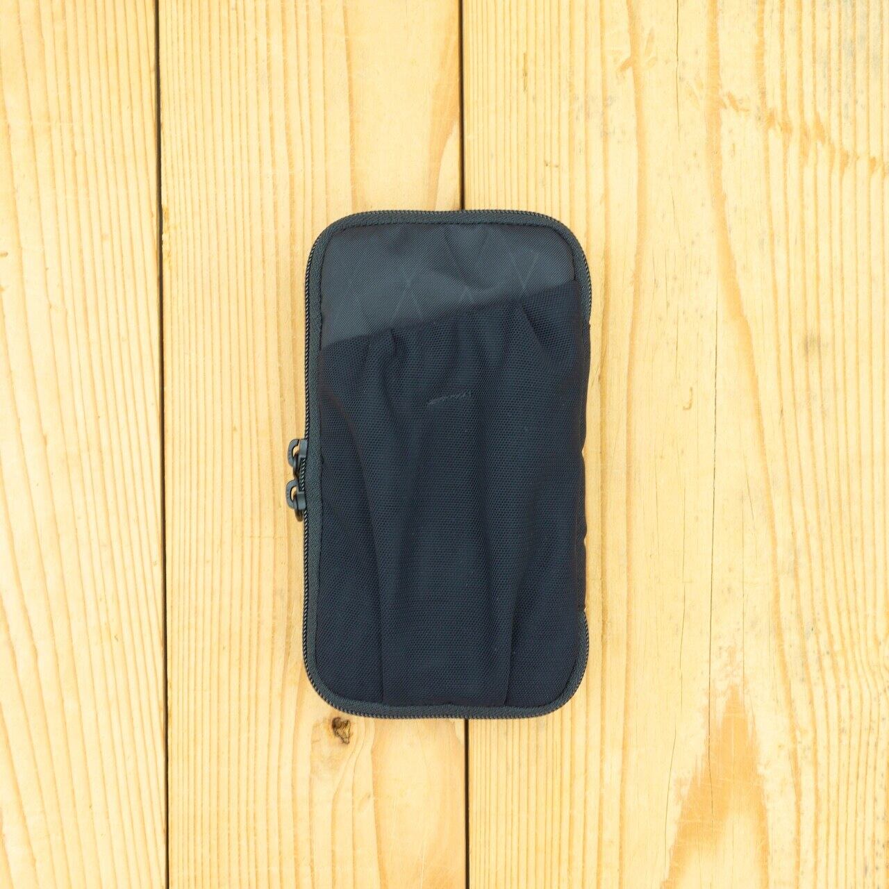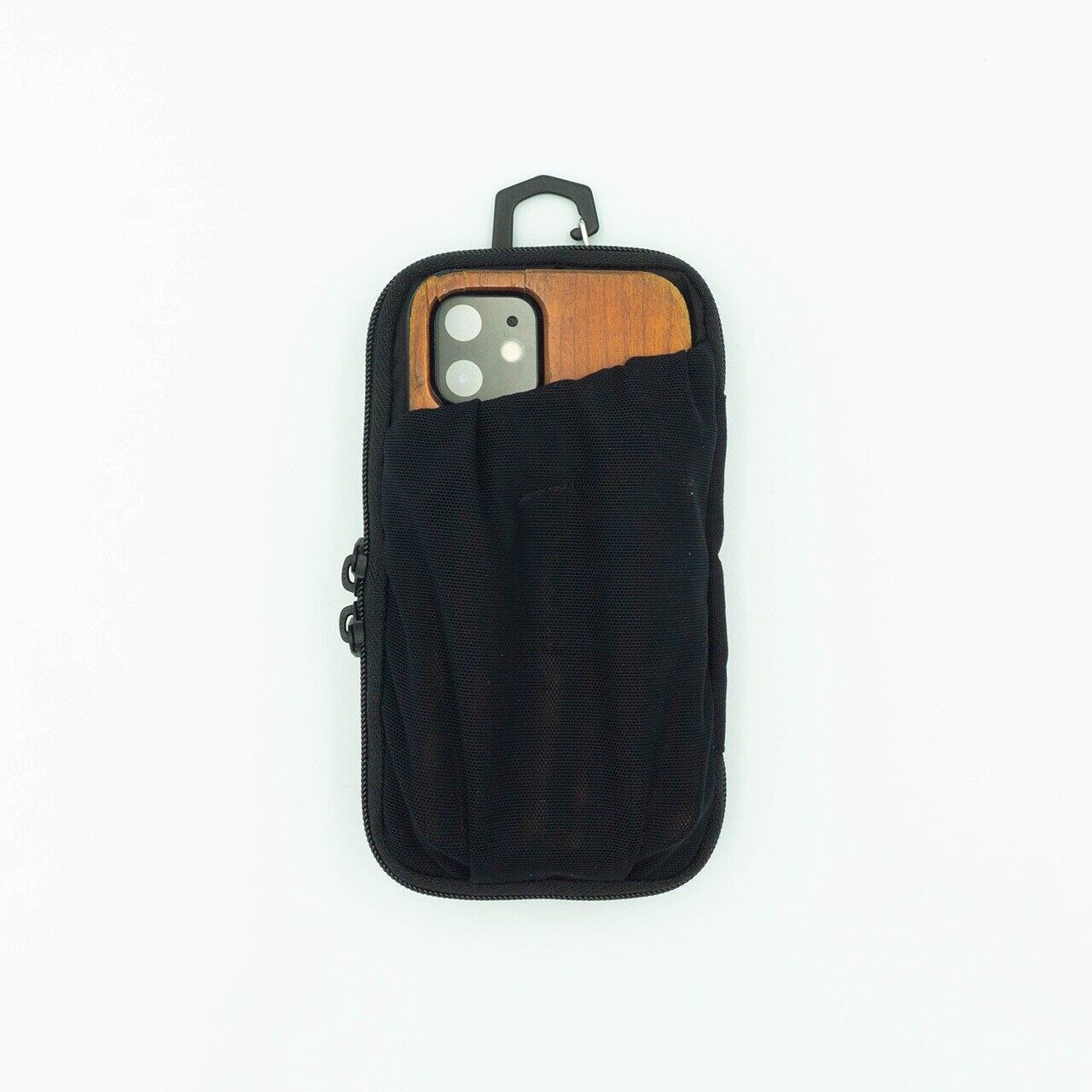 軽量かつ薄型設計で、動きを妨げず、装着感を忘れるほどスマートに収まります。ファスナーは2スライダー仕様で、充電ケーブルを通しながらのスマホ使用も可能です。