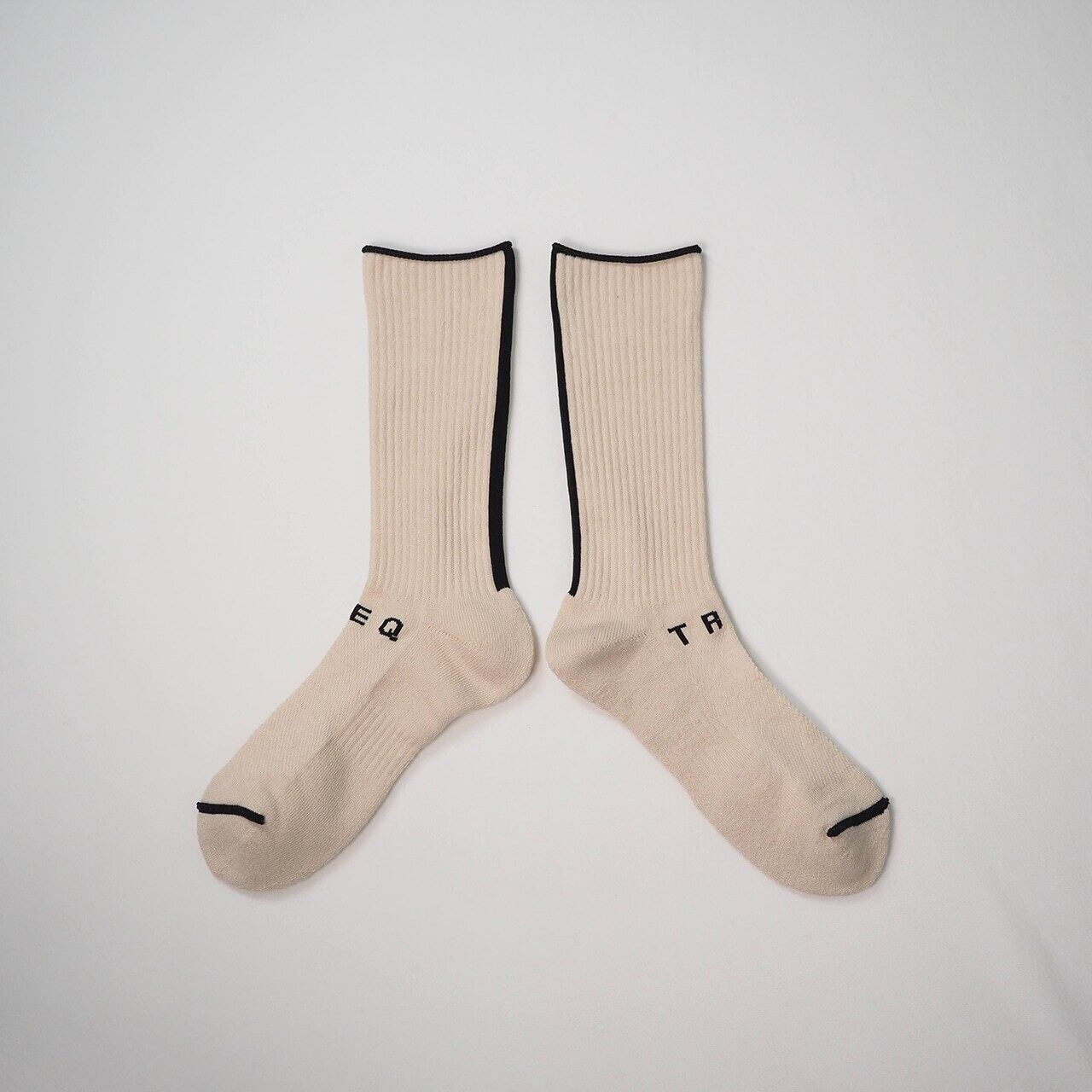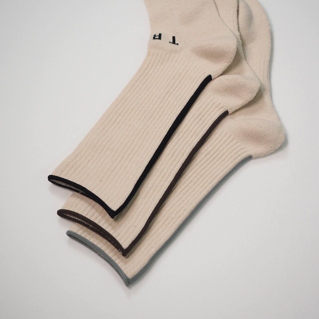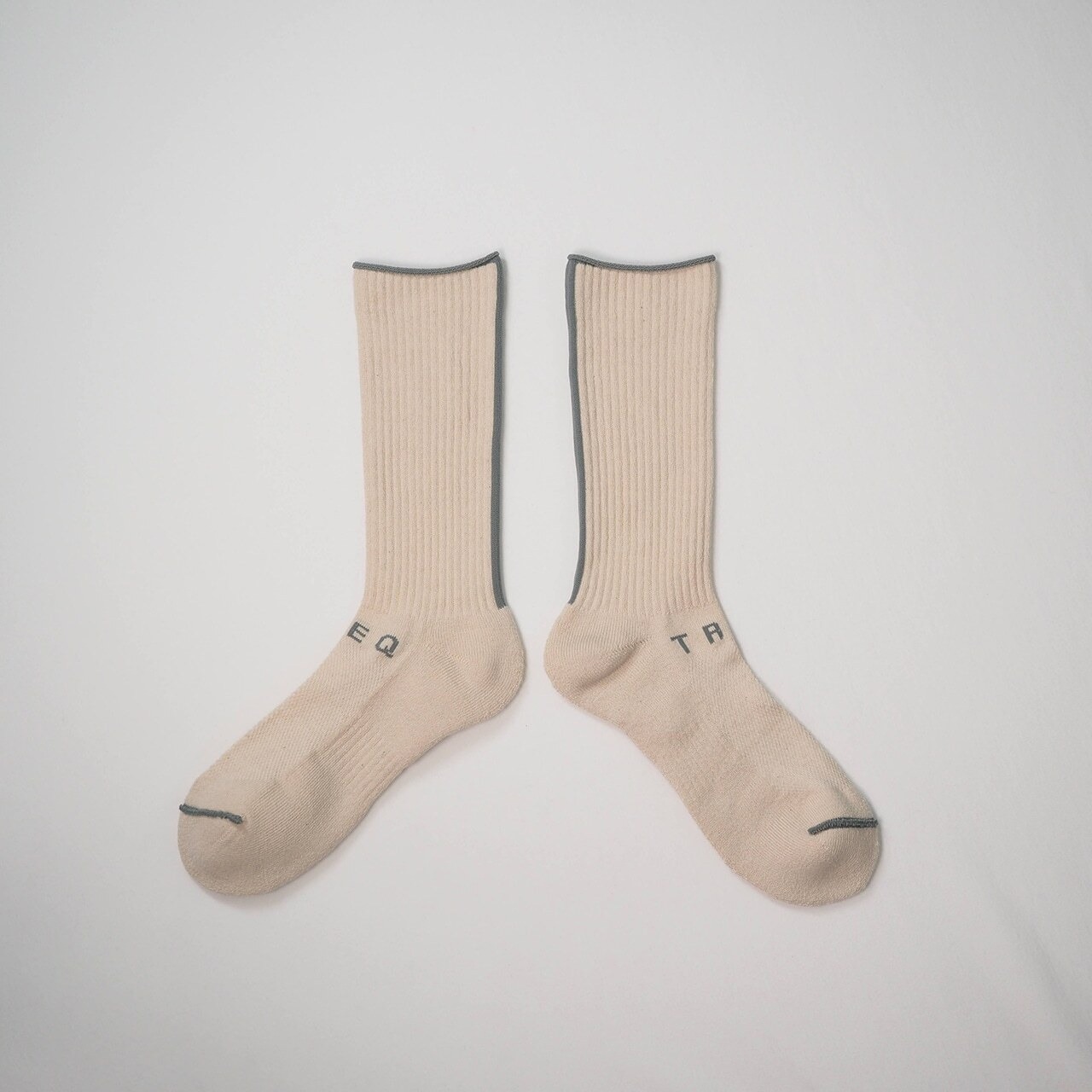 今回も素材は、リサイクルスーピマコットン×メリノウールの混紡糸で作られたクルーソックスとなります。
