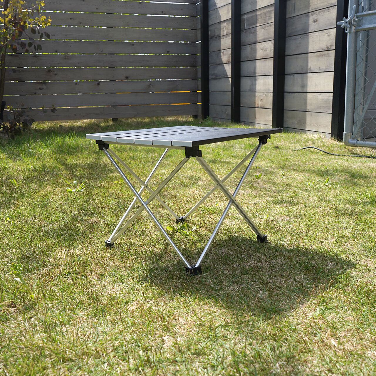 アウトドア用の折り畳み式バーベキューテーブル。