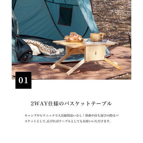 移動や持ち運び時はバスケットとして広げることでテーブルとしても使用頂けます。