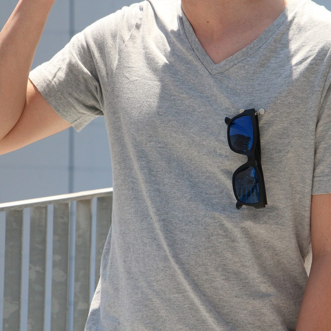 衣服にマグネットパーツを挟みこむことで、メガネやサングラス、IDカード等を掛けることが出来るホルダー。これでシャツの首元や胸ポケットに引っ掛ける必要も無し。
