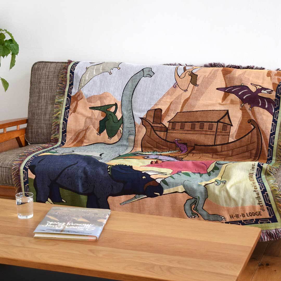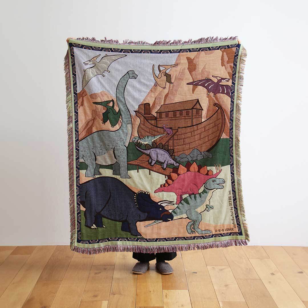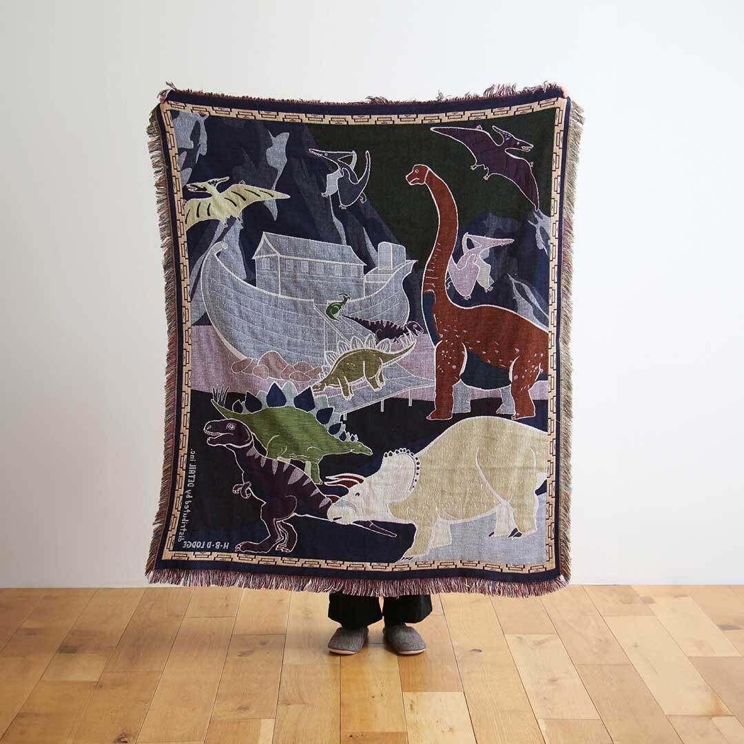 【 Throwket "Ark" 】 大判 ブランケット 恐竜 方舟 リバーシブル ダイナソー ウッドカービング 膝掛け ひざかけ タオルケット ガーゼケット キルトケット おしゃれ プレゼント W127×H150cm detail HERE