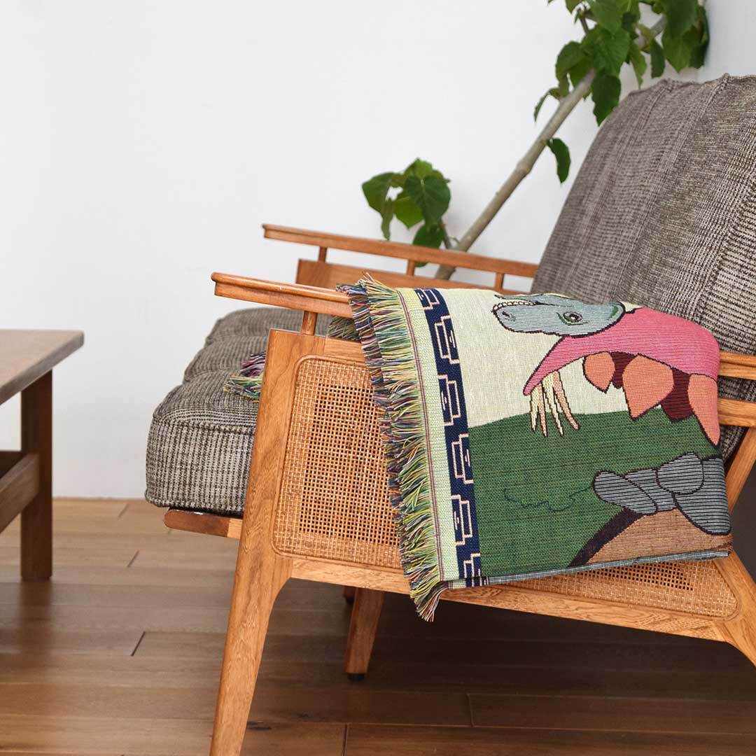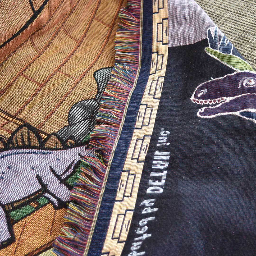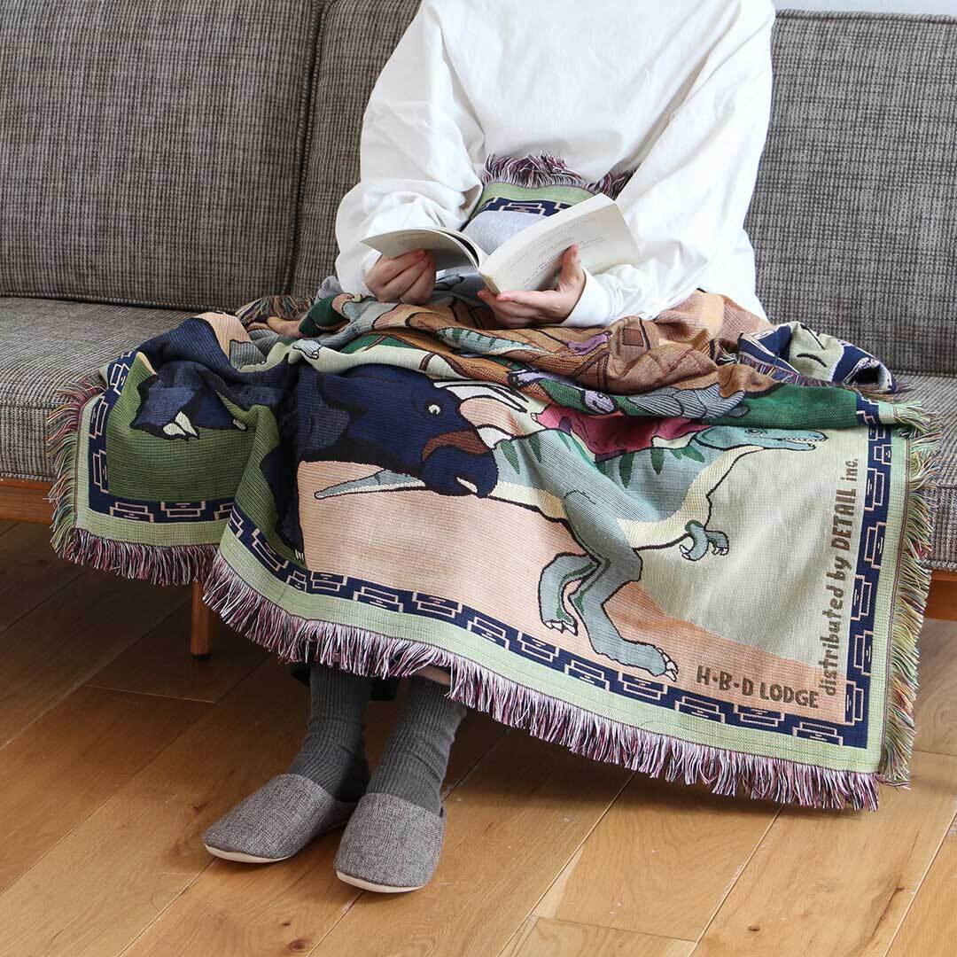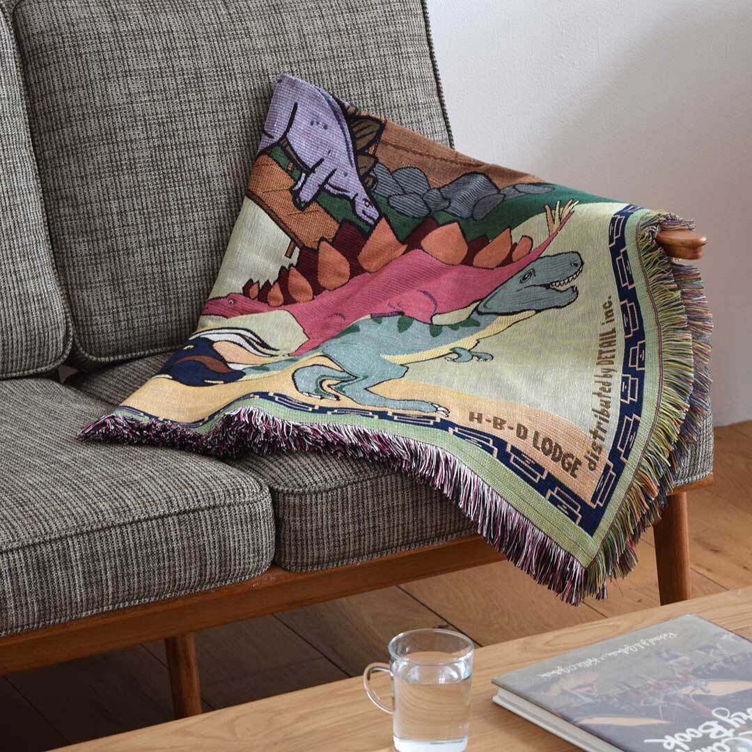【 Throwket "Ark" 】 大判 ブランケット 恐竜 方舟 リバーシブル ダイナソー ウッドカービング 膝掛け ひざかけ タオルケット ガーゼケット キルトケット おしゃれ プレゼント W127×H150cm detail HERE