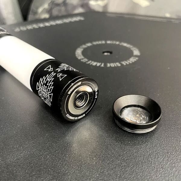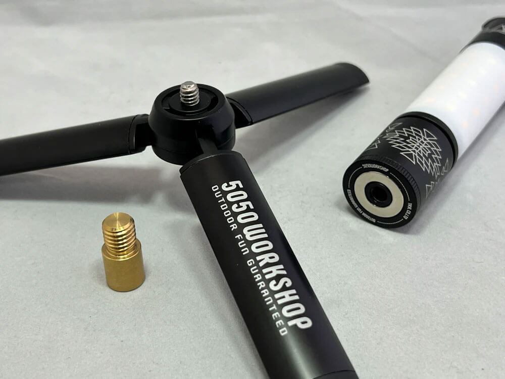 5050WORKSHOPのMINIMALlightの先端(レンズ部分)と付け替えることで1/4ネジの製品に取り付けができるようになる拡張パーツ。