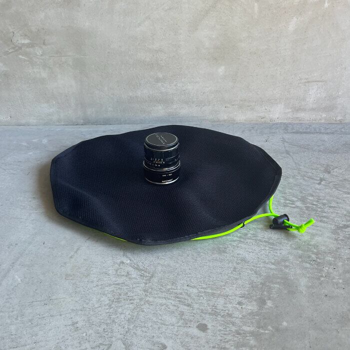 【 sudsns スーデザインズ Sphere sack WR Mesh(M) Black × NeonGreen 】 スーデザインワークス スフィアサック ダブルラッセルメッシュ Mサイズ 巾着 ポーチ suu design works メッシュ カメラ 保護 機械 ガジェット クッション